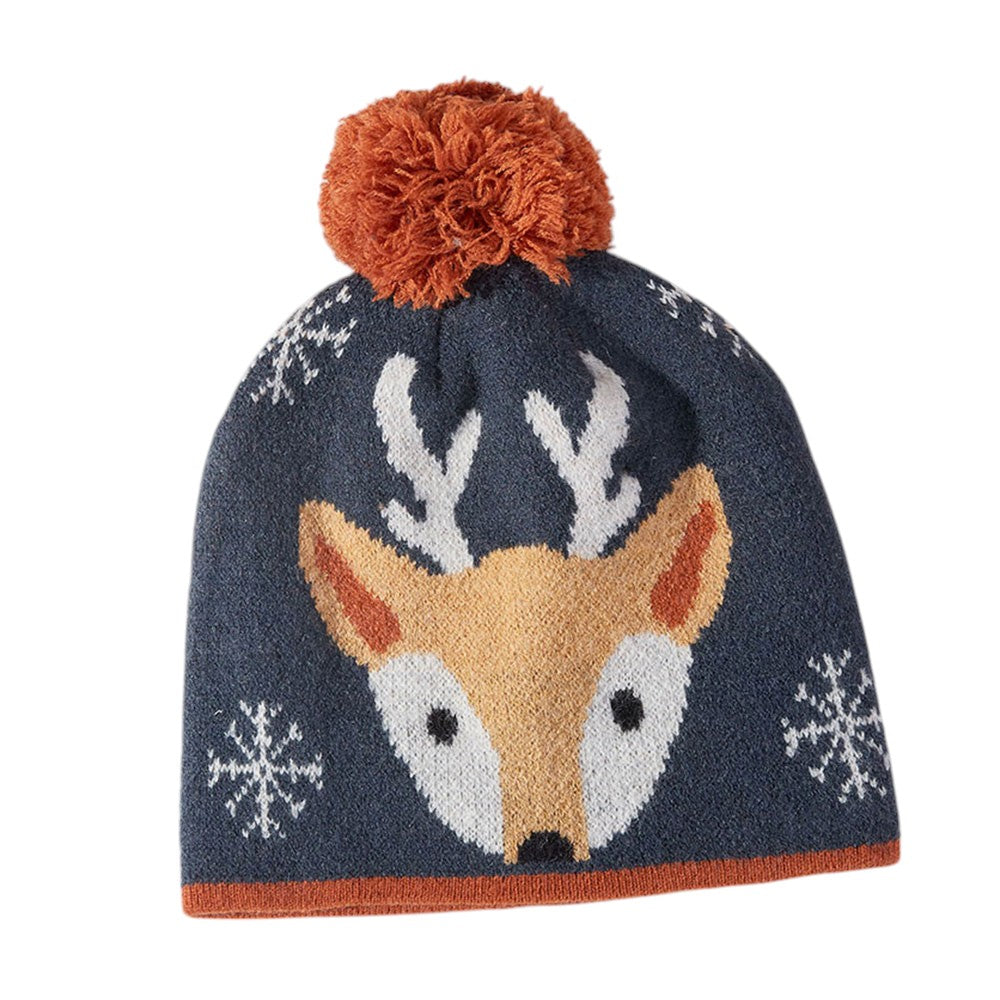 Stay warm and festive with this winter reindeer pom-pom beanie, featuring a cute deer face, snowflake accents, and a fluffy top pom. Ideal for holiday outings, snowy days, or seasonal gifts, this soft knit hat brings comfort and playful charm to any cold-weather look.