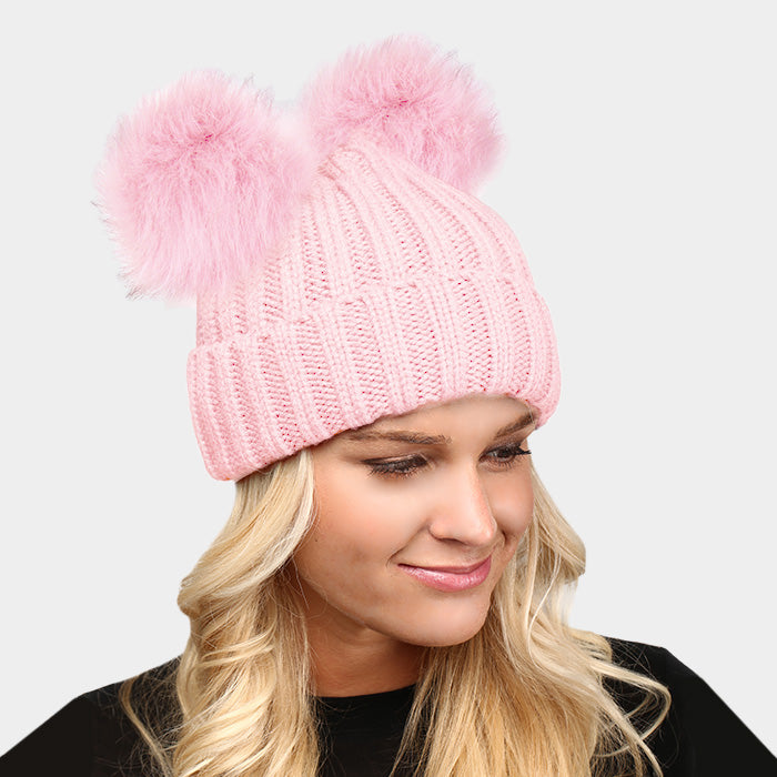 HATEGORY Double Faux Pom Pom Winter Beanie