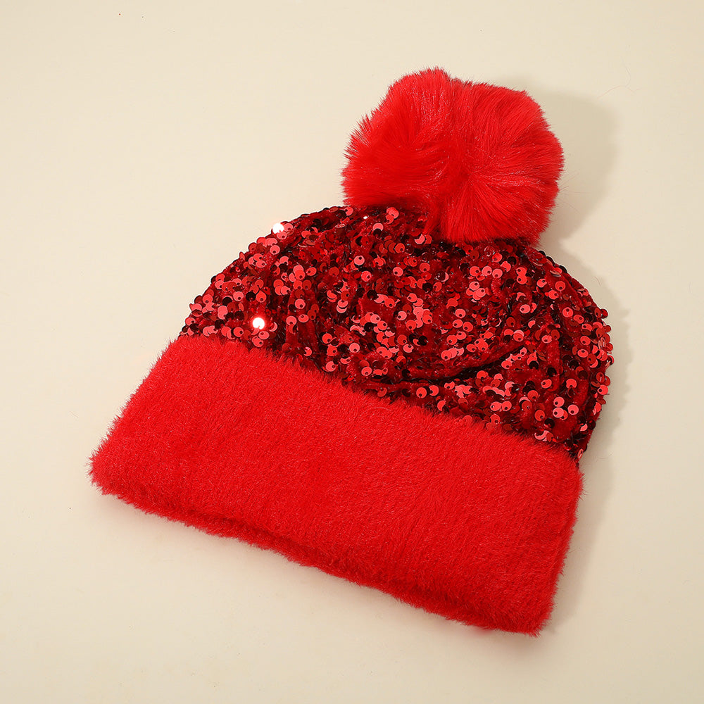HATEGORY Sequin Embellished Pom Pom Beanie Hat