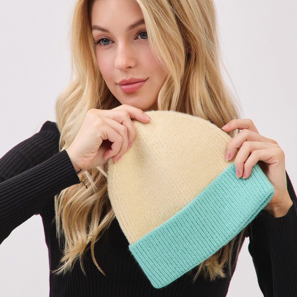 HATEGORY Two Tone Soft Fuzzy Knit Winter Beanie Hat